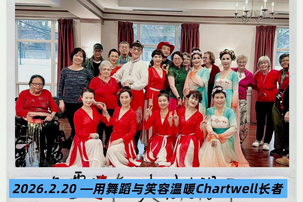 On February 20, the traditional Chinese festival of Welcoming the God of Wealth, the Jiahemay Seniors Association brought more than 20 performers to Chartwell Robert Speck Retirement Residence, delivering a Lunar New Year performance for about 30 seniors. The residents, ranging from 65 to over 80 years old, were fully immersed in the joyful festive atmosphere.